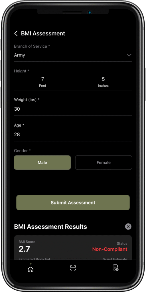 Getting started is simple: just create a profile with your name, branch, and rank. From there, you’ll be guided through each of these sections: Uniform & Appearance: Here, you can follow step-by-step dressing instructions, including correct badge and medal placement. You can also upload a photo of yourself in uniform—either worn or on a hanger—and Squared Away AI will scan and evaluate your look, ensuring all elements are properly aligned and measured. Hair & Grooming: Using facial recognition, the app scans your hairstyle and grooming to confirm whether you’re within current military regulations. Height & Weight: With over 68% of military personnel classified as overweight or obese according to a recent study by the American Security Project (as cited in Military Times and RollCall.com) this section helps you prep for your height and weight exam. It calculates your Body Fat Percentage, checks compliance, and offers personalized tips for improvement.