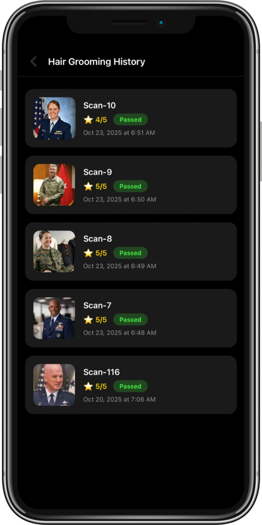 Using facial recognition, Squared Away AI verifies that your hairstyle and grooming meet current military standards for your branch.