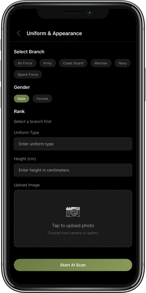 Upload a photo of yourself in uniform, and the app will analyze badge placement, alignment, and overall presentation, ensuring compliance with regulations.